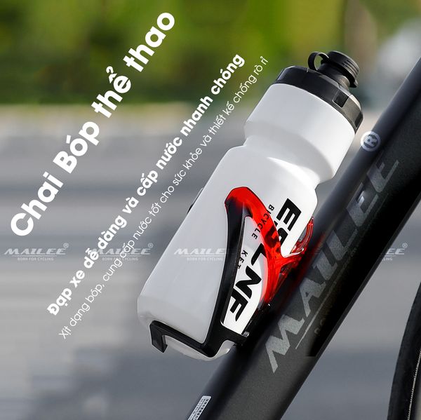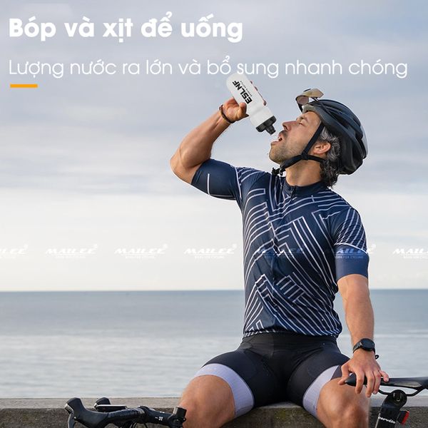 Bình nước xe đạp này được làm từ chất liệu TPE, PP và silicone cao cấp, với thân bình PP5 chắc chắn chống nắng, đảm bảo an toàn và sức khỏe cho nước uống.