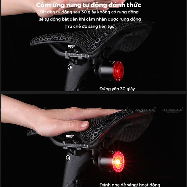 Đèn Đuôi Xe Đạp Thông Minh HJ-078 Chống Nước Cảm Biến Phanh Đi Đêm, sạc Type-C dung lượng 250mAh - Mai Lee