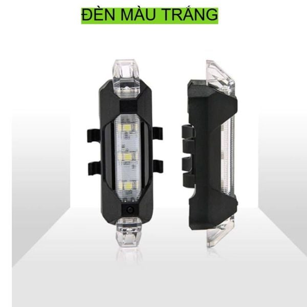 Đèn hậu cảnh báo gắn phía sau màu trắng sạc điện usb chống nước giúp đạp xe an toàn ban