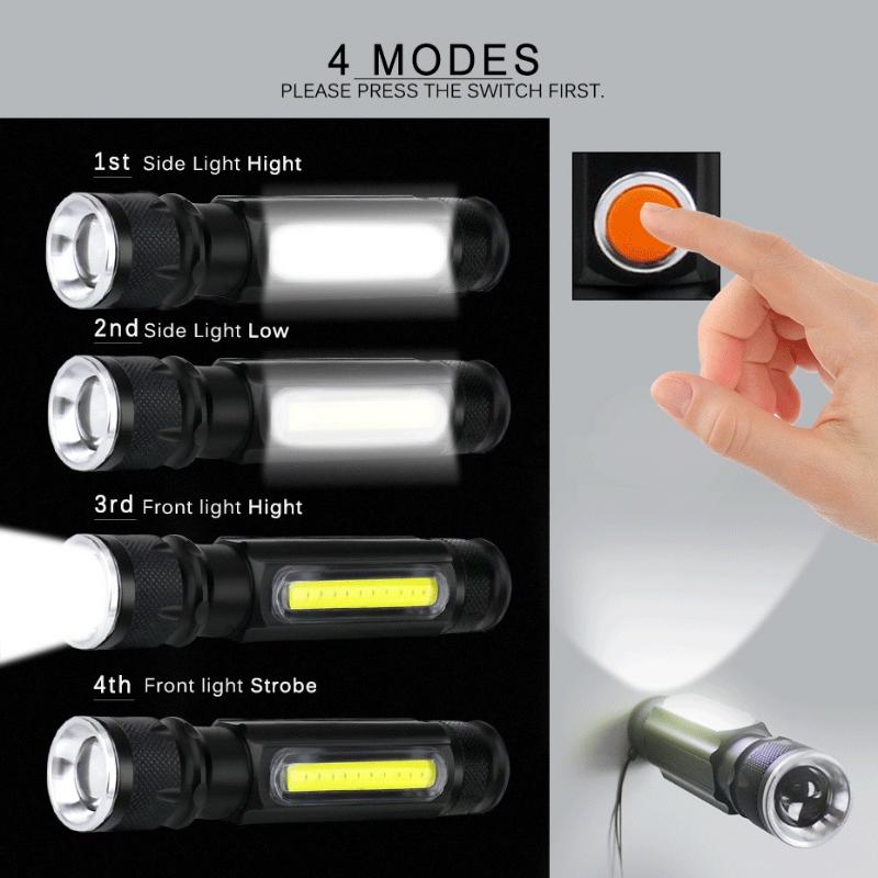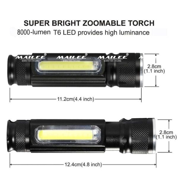 Đèn pin siêu sáng cầm tay bóng LED thân có zoom quang học cự ly chiếu xa trăm mét, đế hít nam châm kim có zoom xa gần sạc USB