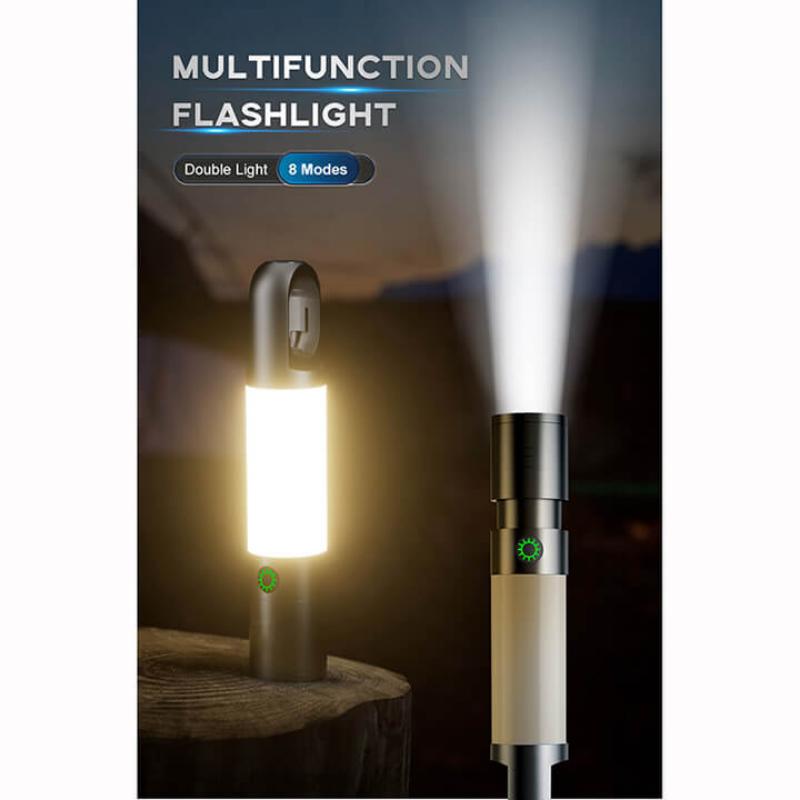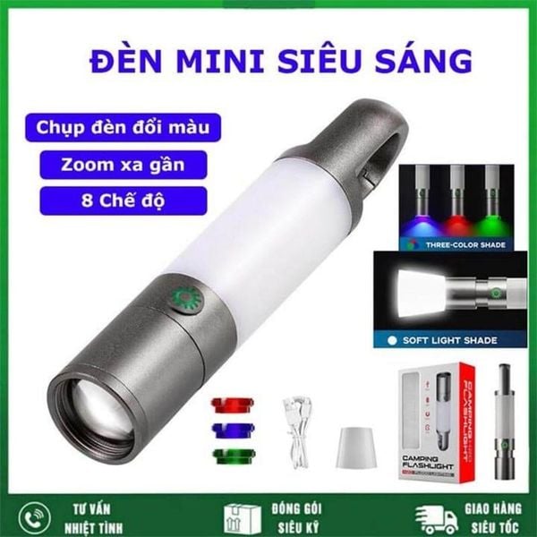 Đèn pin siêu sáng cầm tay có zoom xa gần, đèn led cắm trại dã ngoại 8 chế độ sáng, 5 màu ánh sáng có móc treo tiện dụng Mai Lee
