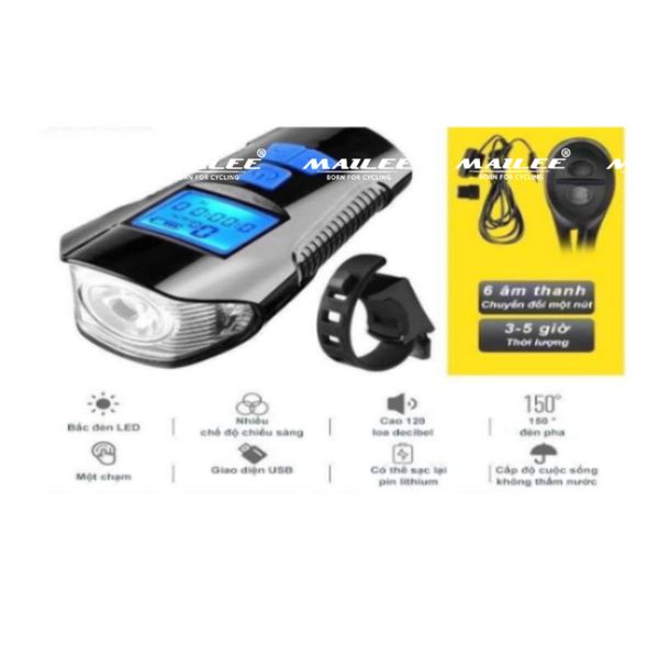 * Đèn pha xe đạp kèm còi