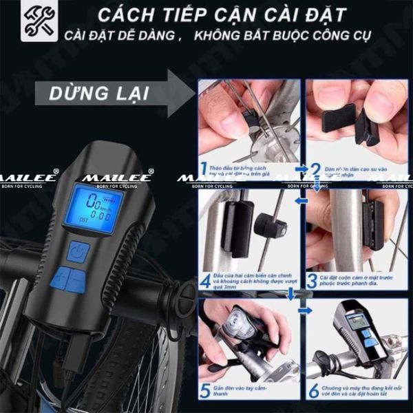 Đi kèm với chuông xe đạp 120dB, có 6 kiểu âm thanh, một nút chuyển đổi, cải thiện đáng kể độ an toàn khi đi xe vào ban đêm và trong những ngày mưa, rất dễ lắp đặt trên ghi đông xe đạp.