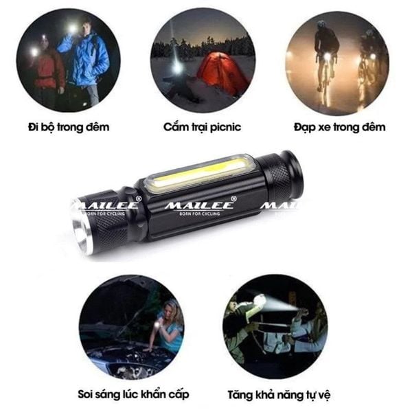- Chế độ sáng: 5 chế độ 100% -70% -50% -Flash-SOS