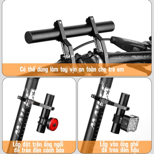 Thiết kế đa chức năng: Giá đỡ tay lái xe đạp mở rộng này được làm từ hợp kim nhôm và cung cấp nhiều chức năng thực tế. Nó cho phép mở rộng đồng thời vị trí lắp đặt đèn xe và máy tính, mang lại trải nghiệm hình ảnh tốt hơn và giám sát dữ liệu hiệu quả.