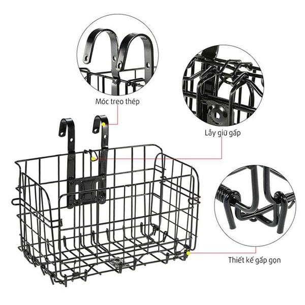 - Thiết kế giỏ xe có thể gập lại, phù hợp với hầu hết các loại xe đạp trên thị trường
