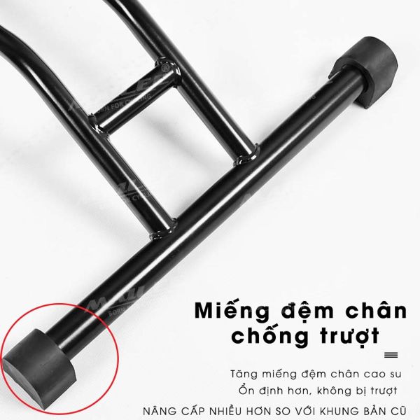 Chân đế cao su chống trượt, tăng sự ổn định cho khung bánh xe, thích hợp cho sàn gỗ trong nhà tránh xước nền khi sử dụng