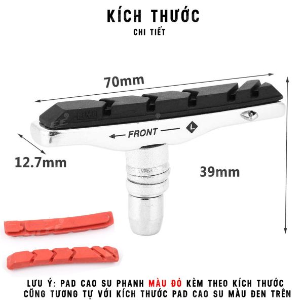 Chiều dài: 72mm, chiều dài má phanh 70mm, rộng 12.7mm